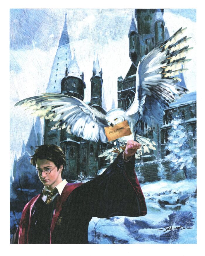 Artist Jim Salvati was brought on board for Harry Potter films three and four, where he was assigned to develop paintings in his unique style. Each piece in the series is adopted from conceptual sketches and film stills taken directly from the movie to create original oil background paintings.
